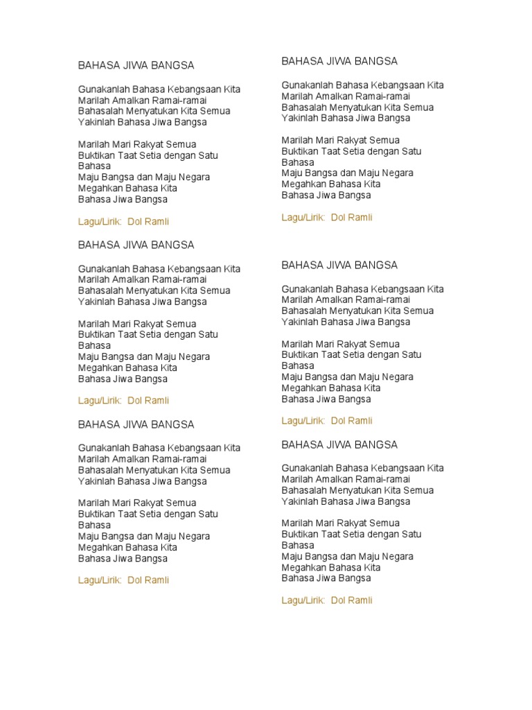 Lirik Lagu Bahasa Jiwa Bangsa Pdf